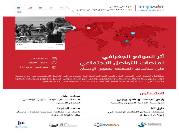 شاركت هيومينا بندوة حول “أثر الموقع الجغرافي لشركات التواصل الاجتماعي على سياساتها”.